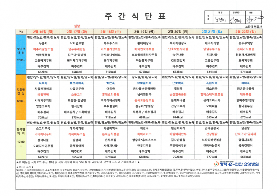 주간식단표