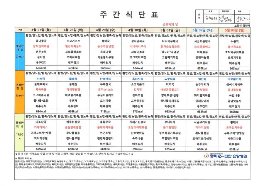 주간식단표