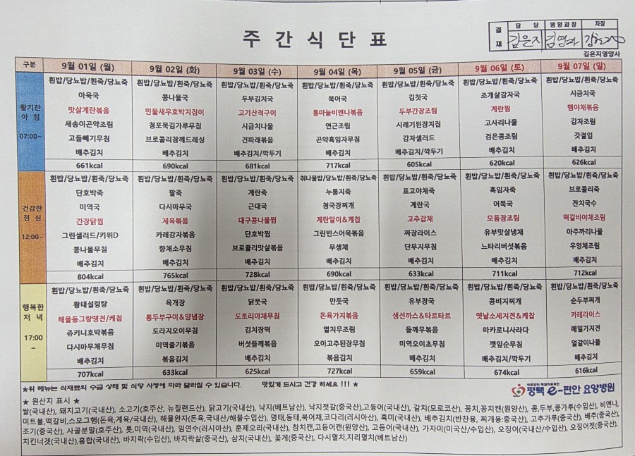 주간식단표