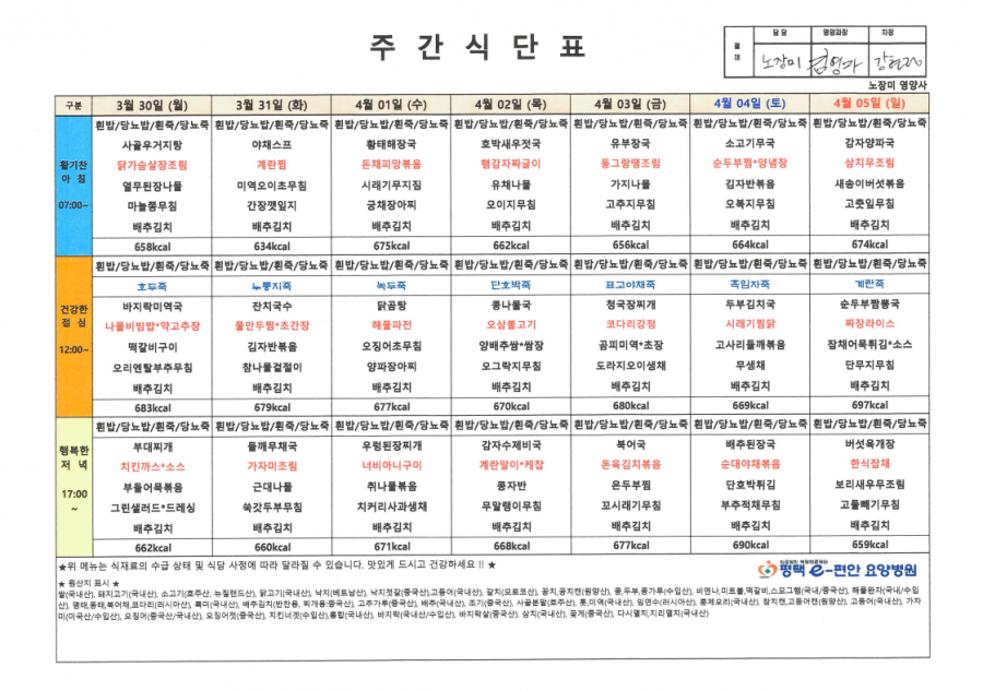 주간식단표